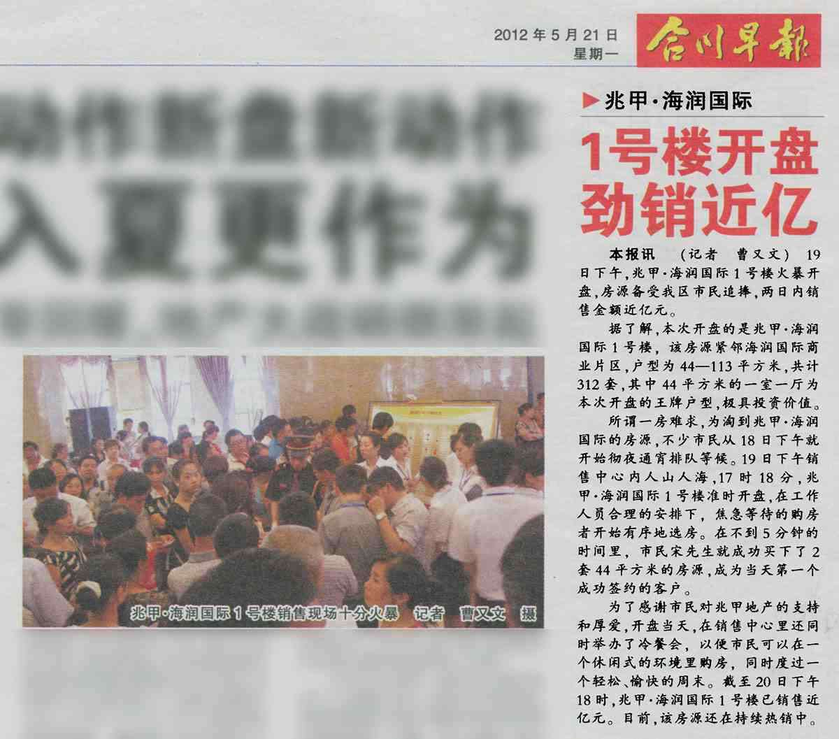 合川早报关于海润国际1号楼开盘热销的新闻