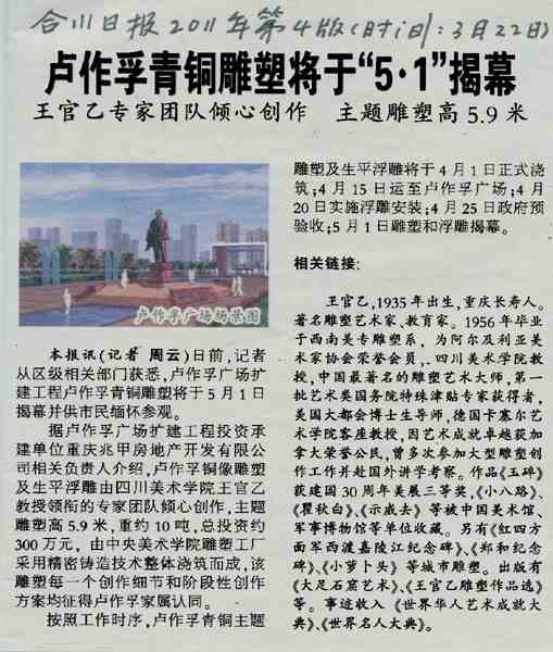 卢作孚青铜雕塑将于“5.1”揭幕