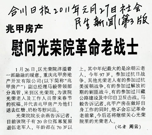 兆甲慰问合川光荣院革命老战士