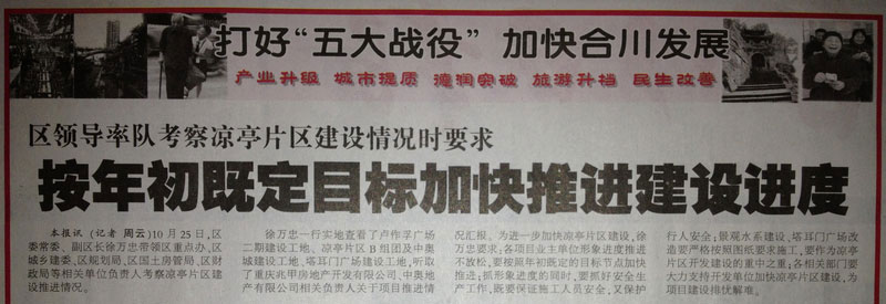 合川报《区领导率队考察凉亭片区建设情况》