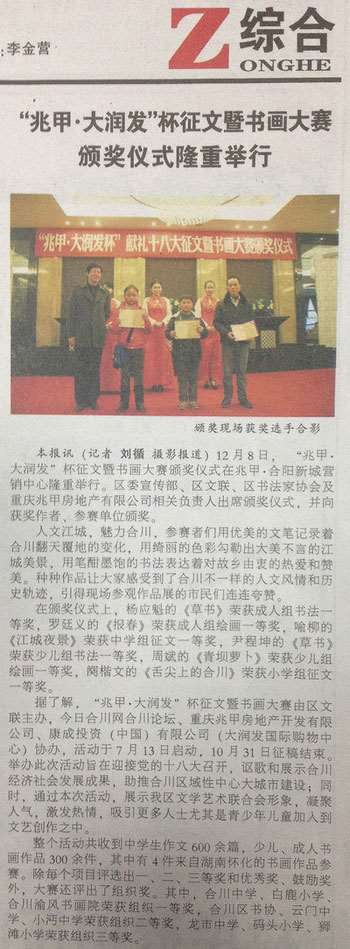 合川报-"兆甲.大润发杯"献礼十八大征文暨书画大赛颁奖仪式隆重举行