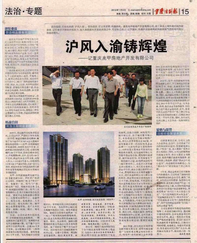 重庆法制报《沪风入渝铸辉煌-记重庆兆甲房地产开发有限公司》