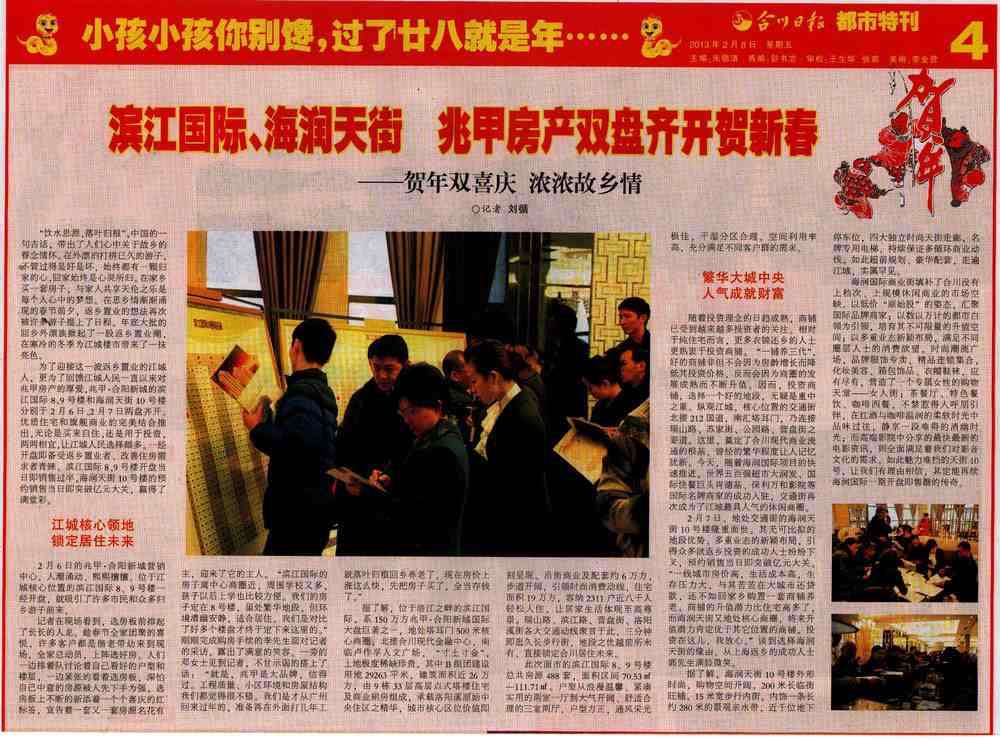 合川报《滨江国际、海润天街 兆甲房产双盘齐开贺新春》