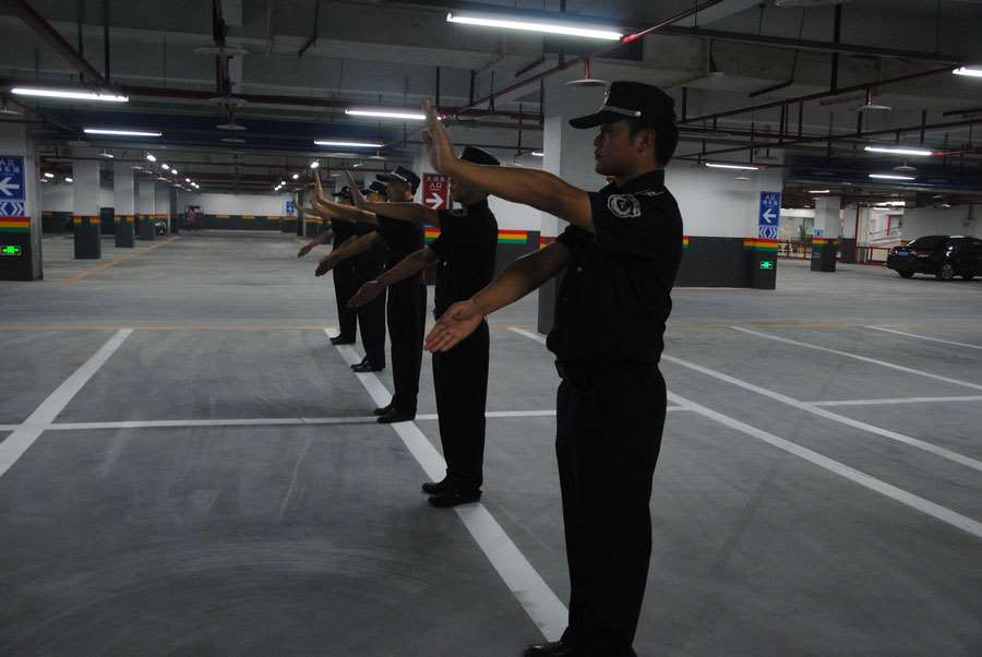 为力求取得实效,做到理论与实作相结合,此次培训活动共采用理论培训和消防军事培训两种方式进行,其中,理论培训5天,由物业公司相关领导主讲,消防军事培训10天,在车库、岗亭、小区等现场进行实际操作,整个培训的主要内容包括车场管理方案培训、物业案例讨论和分析、文明礼貌用语、公司管理规章制度等方面,而培训的主要考核方式则包括抽问、现场操作等。