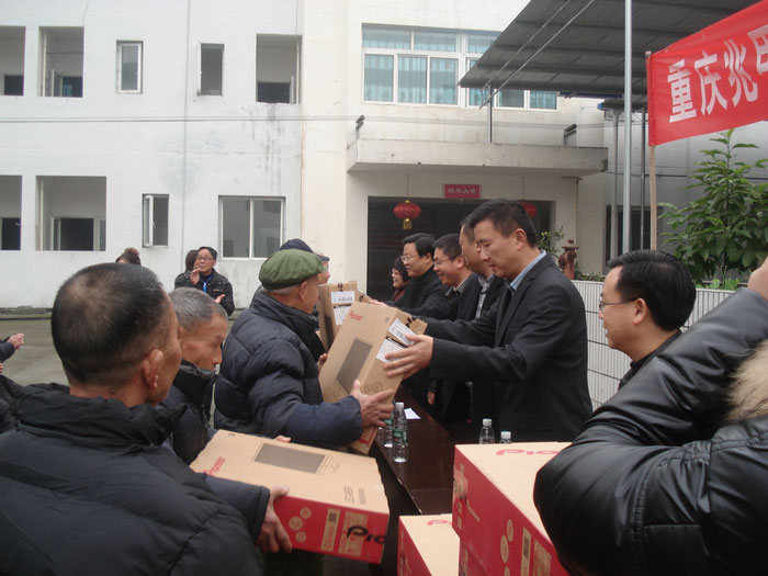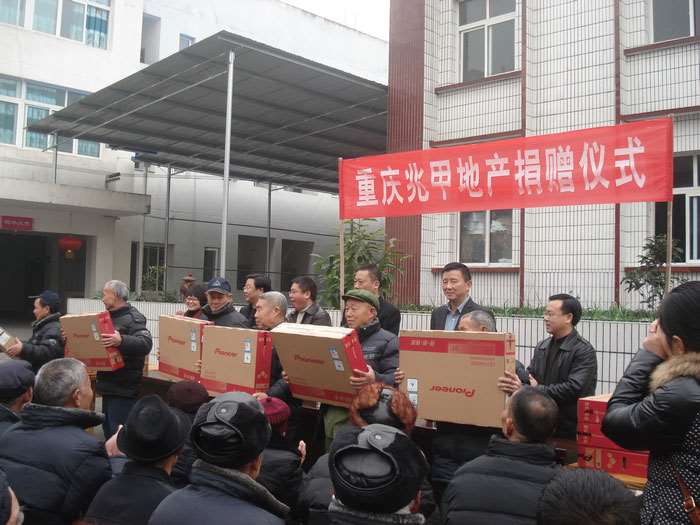 兆甲房产副总经理王彦代表公司进行了发言,他首先对区委、区府各级领导以及区委统战部、区总工会等部门表示感谢,感谢他们搭建了这样一个爱心公益平台,让公司能为老人们送上一份爱心。随后,他对公司的爱心事业做了简要的介绍,他说:“重庆兆甲房地产开发有限公司是一家本地知名的地产企业,作为一家有社会责任感的企业,我们一直关注社会公益事业,做到取之于社会,回馈于社会。近几年来,公司先后捐出近千万元,投入到合川的文化公益活动、修桥铺路、慰问困难群众等事业中去,为建设“德润合川”“、美丽合川”作出了自己的努力。尊老爱幼不仅仅局限于赡养自己的父母、抚养自己的子女,而且要求我们更要以真情去对待社会上所有的老人和儿童。所谓“老吾老,以及人之老;幼无幼,以及人之幼”便是这个道理。所以,今天我们来到这里,为各位老人送上彩色电视机,祝愿他们的晚年生活丰富多彩、开心如意。”