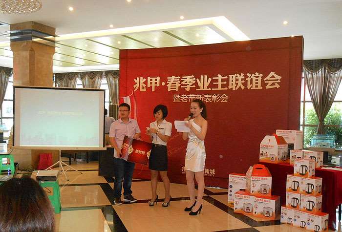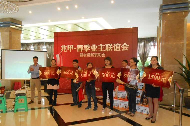 春季联谊会 温馨你我他 下午15时,在现场约两百名业主的注视下,兆甲·春季业主联谊会暨老带新表彰会正式拉开帷幕。联谊会上,兆甲·合阳新城销售经理卢民权首先代表兆甲地产向各位到场的业主表示深深的感谢,同时他也对兆甲·合阳新城的销售情况作了简单的说明,他说:“在刚刚过去的2014年春节,兆甲房产赢得了马年开门红,在整个春节期间,以劲销500余套的业绩第四次蝉联合川区春季销售冠军。优异成绩的取得既是全体兆甲员工努力的结果,同时也是广大业主大力支持和厚爱的结果。”