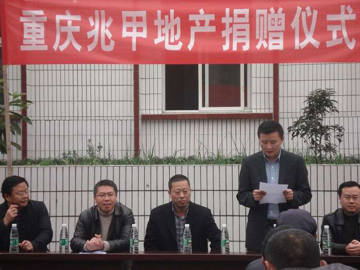 兆甲房产副总经理王彦代表公司进行了发言,他首先对区委、区府各级领导以及区委统战部、区总工会等部门表示感谢,感谢他们搭建了这样一个爱心公益平台,让公司能为老人们送上一份爱心。随后,他对公司的爱心事业做了简要的介绍,他说:“重庆兆甲房地产开发有限公司是一家本地知名的地产企业,作为一家有社会责任感的企业,我们一直关注社会公益事业,做到取之于社会,回馈于社会。近几年来,公司先后捐出近千万元,投入到合川的文化公益活动、修桥铺路、慰问困难群众等事业中去,为建设“德润合川”“、美丽合川”作出了自己的努力。尊老爱幼不仅仅局限于赡养自己的父母、抚养自己的子女,而且要求我们更要以真情去对待社会上所有的老人和儿童。所谓“老吾老,以及人之老;幼无幼,以及人之幼”便是这个道理。所以,今天我们来到这里,为各位老人送上彩色电视机,祝愿他们的晚年生活丰富多彩、开心如意。”