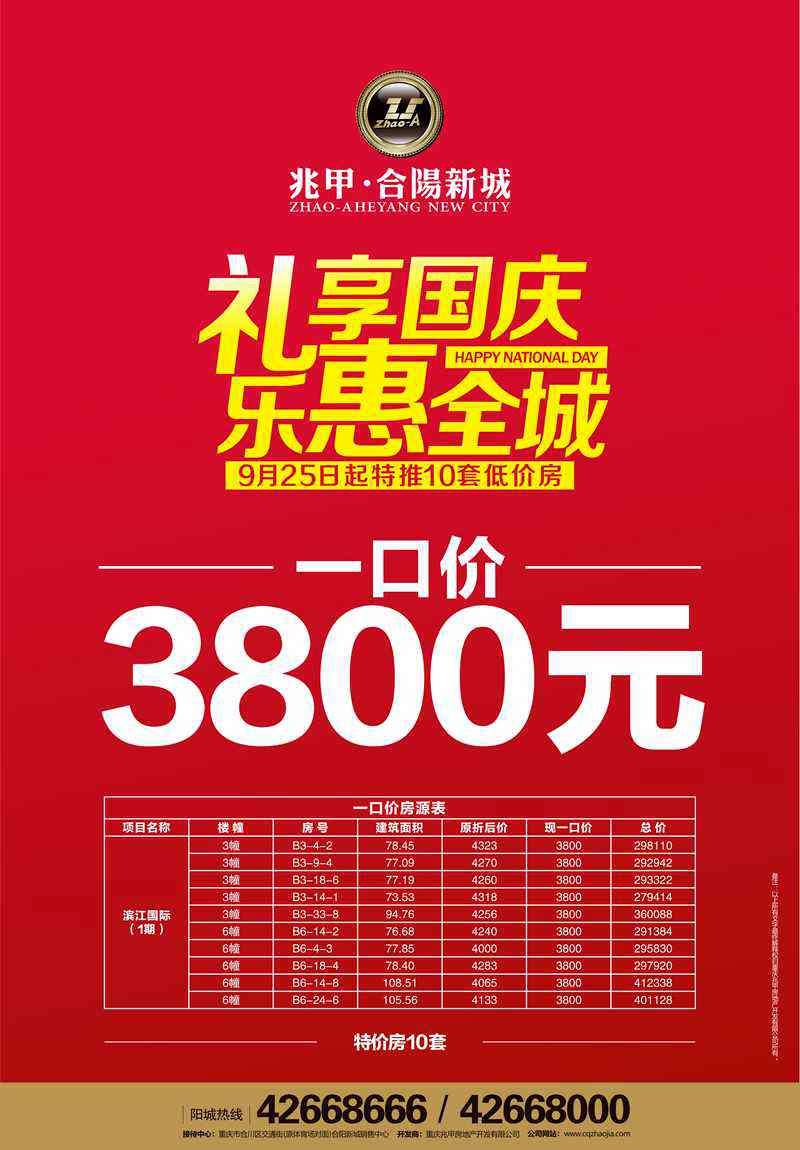笔者从兆甲·合阳新城企划部相关人员处了解到,从9月25日起,兆甲·合阳新城·滨江国际一口气推出了10套特价房,并全部实行一口价3800元/㎡的政策,此批特价房为75—109㎡不等的实用两房和舒适三房,而且总价也极具性价比,只需28万左右,业主们便可拥有城市核心的滨江两房。