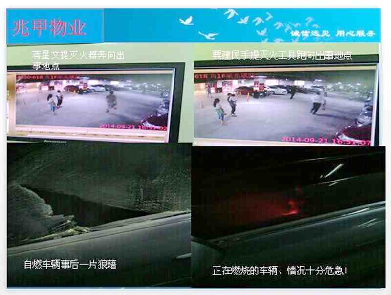 粟建民、朱斌、蒋星文三位员工不惧火险,迎难而上及时有效地阻止了一起火灾事故,极大地保护了车主和其他业主、顾客的生命财产安全。为弘扬正气,表彰先进,兆甲物业根据《员工奖惩管理办法》第4条第2.2款的规定,对粟建明、朱斌、蒋星文三位员工分别予以通报表杨并每人奖励现金200元以资鼓励。