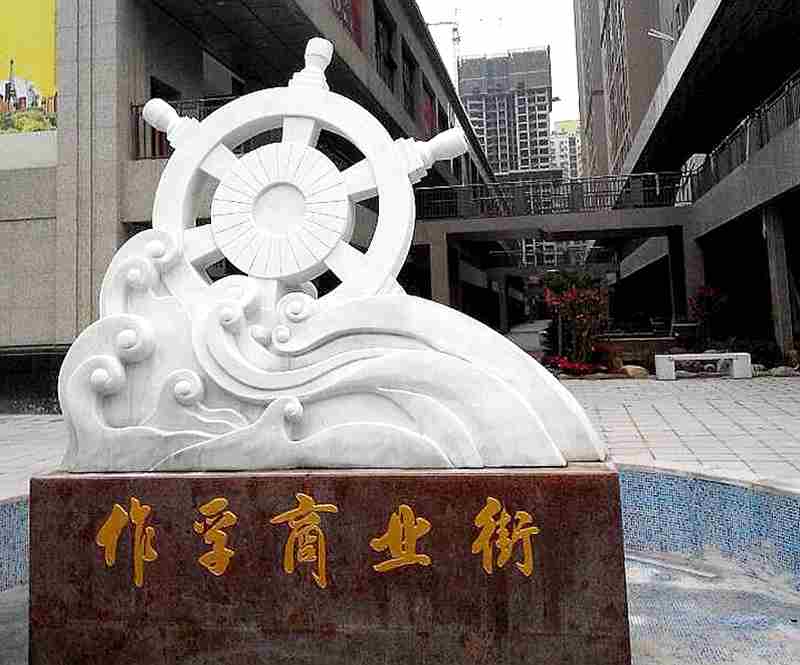 (图为作孚商业街雕塑及街名-由重庆合川区书协副主席粟彪书写)