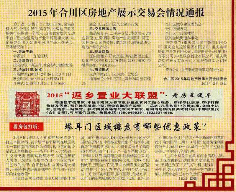 信息来源:合川日报 都市特刊 总第205期 房产专刊