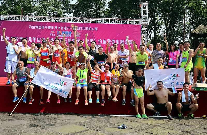 陈玉林代表市体育局向各参赛代表队致以诚挚的问候和热烈的欢迎。他说,近年来合川区委、区政府高度重视体育工作,在深入推进全民健身运动中,着力实施健康惠民工程,群众体育活动蓬勃开展,取得了可喜的成绩,合川区体育局获得国家体育总局颁发的“全民健身活动优秀组织奖”。举办本次钓鱼城登山邀请赛有利于深入挖掘传统体育文化资源,打造地方特色体育活动品牌,进一步推动全民健身系列活动的全面开展,倡导全民健身生活化、科学化,实现“我锻炼、我快乐、我健康”的目标,为我市全民健身运动的广泛开展作出新的贡献。 开幕式结束后,选手们分组向钓鱼城上奔去。登山过程中,队员们认真调节着呼吸节奏,坚持朝着终点奋进。整场比赛,既能看到选手们争先恐后、紧张有序地追赶着,又能看到大家发扬体育精神相互搀扶坚持到最后。在沿途,还有医护工作者和青年志愿者为选手们提供周到的服务,良好保障了比赛的顺利进行。经过1个多小时的激烈角逐,重庆出版集团、市教委、市工商局分别斩获市级机关团体组第一二三名;太和镇、区公安局、区交委分别获得合川区镇街及部门团体组男子个人第一二三名,周波获得公开个人组男子第一名,郑文荣获得公开个人组女子第一名。