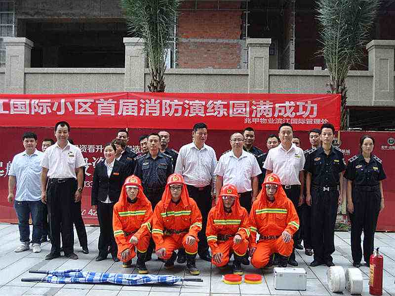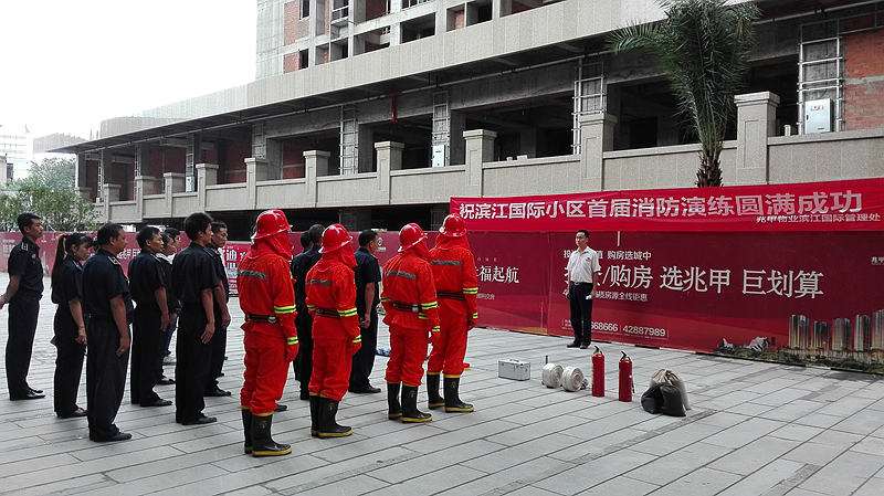 9月24日下午15:05分,正当笔者经过滨江国际步行街时,忽然听到对讲机里传出一阵阵急促的对话声,到底怎么回事,难道就近的大楼出现了什么紧急的火情?随着呼叫声的来源走近,笔者发现滨江国际物业管理处全体人员早已在8号楼前整装待命,队伍前摆满了灭火器、急救箱、担架、沙袋等消防用品。原来,这里正在举行2015秋季消防实战演练活动,而横幅上豁然写着几个大字:“祝滨江国际小区首届消防演练圆满成功”。