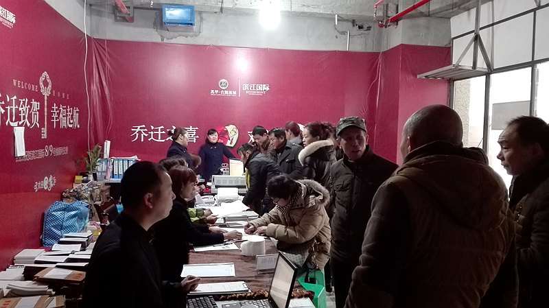 从早上8:30分开始,位于卢作孚路的滨江国际物业中心和交通街海润国际E2组团物业中心便热闹非凡,业主们陆续从四面八方赶来,在印有“乔迁之喜、欢迎回家”等温馨字样的大厅内,在工作人员的指引下,各项交房手续紧张有序的办理,业主们迫不及待的完成验证、补缴费、验房、领取钥匙等各项接房工作。在现场,公司总经办、工程部、销售部、财务部、物业公司等部门的领导和同事积极配合,快速响应业主的疑问,努力帮助业主办理手续,使交房工作顺利进行。
