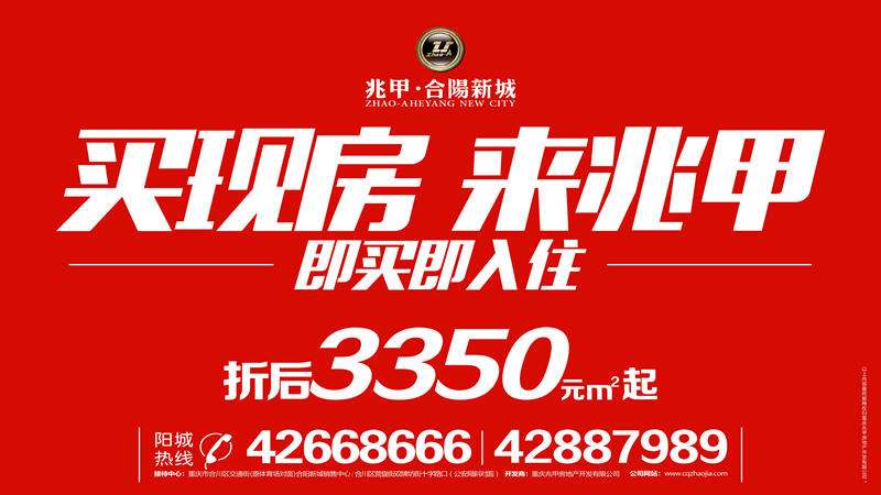 本报讯 为回馈合川市民,让广大购房者在2016年春节能圆自己的置业梦,兆甲房产近期隆重推出“买现房 来兆甲 即买即入驻 折后3350元起”的新年促销活动。