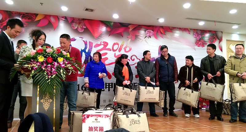 在团拜会最后,为感谢全体员工2015年的努力,公司还特意安排了抽奖的环节,分别由兆甲房产总经办、物业公司等相关领导抽出了一至五等奖,并为获奖者送上丝巾、床上用品、购物卡及现金大奖等丰厚的大礼。大家一边享受着中奖的快乐,一边举起酒杯,品尝着丰收的喜悦,畅想着猴年美好生活。