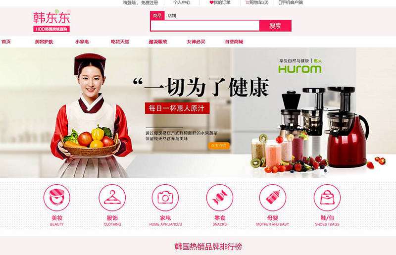(图为国内首个中韩跨境电子商务平台-韩东东韩国城首页)