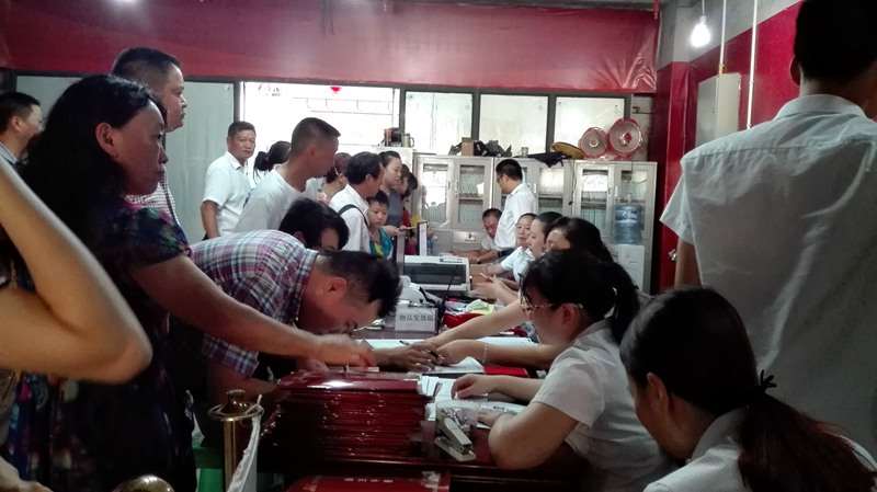 上午8:00分,兆甲房产和兆甲物业的工作人员便陆续到位,准备着接房的各种材料。虽然室外的阳光异常刺眼,温度也直逼38度,但就是这样的酷热天气,也阻挡不住工作人员的热情和业主归家的脚步。从8:30分开始,物业中心交房桌旁便开始挤满了人。当然,现场工作人员也是有备而来、沉着应对,他们有计划的带领业主们完成交费、领钥匙、验房、领证等一系列环节,并耐心的解答着业主们提出的各种问题。