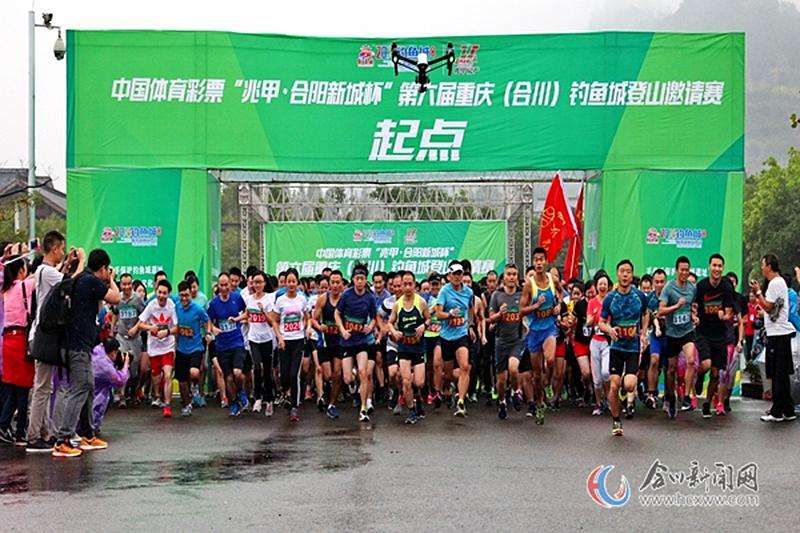 9月9日上午,中国体育彩票“兆甲·合阳新城杯”第六届重庆(合川)钓鱼城登山邀请赛在钓鱼城奇胜门游客中心拉开帷幕。来自重庆市级部门的48支代表队和合川区级部门的61支代表队以及公开个人组共计1000余名运动员云集江城开展比拼,感受运动快乐,展示自我风采。