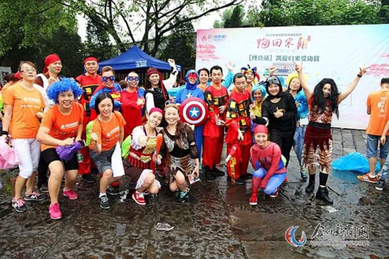 开幕式结束后,参赛选手们分组向着终点的方向奔去。虽然下着雨,但是选手们的兴致高昂,在比赛途中你追我赶,保持着良好的竞技状态;也有团结协作、相互鼓劲的选手,让我们看到了团结的力量和高贵的体育精神。在沿途,还有医护工作者和青年志愿者为选手们提供细致周到的服务,良好保障了比赛的顺利进行。