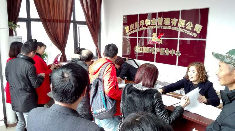 早上8:30分,兆甲物业滨江国际管理处的工作人员便早早到场,公示牌、指示牌、钥匙、交房资料等物资早已各就各位,约9:00,交房手续正式办理,在现场人员的引导下,业主们依次完成补缴款、验证验房等一系列接房工作。与此同时,兆甲房产工程部、物业公司等部门的领导和同事也来到现场,与业主们进行及时的沟通和交流,就一些大家关心的问题进行解答。