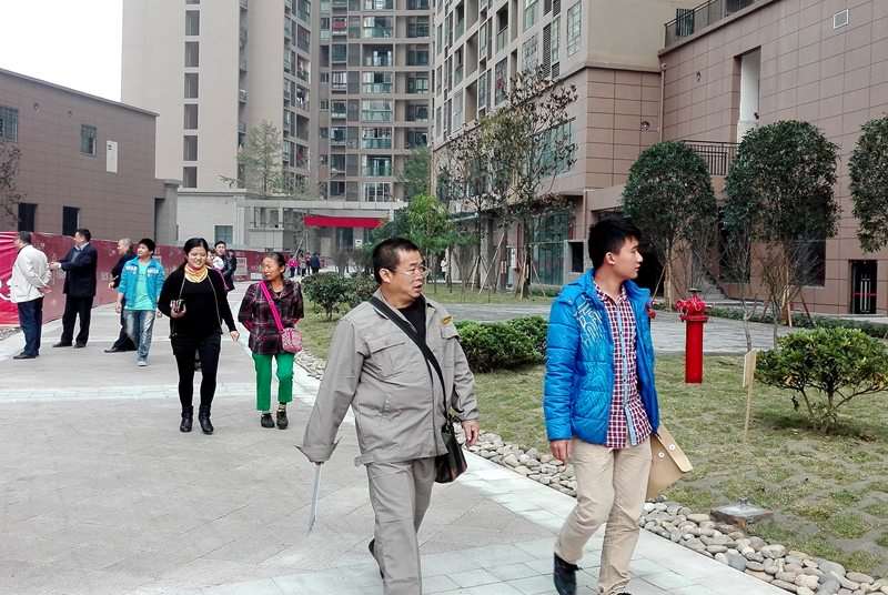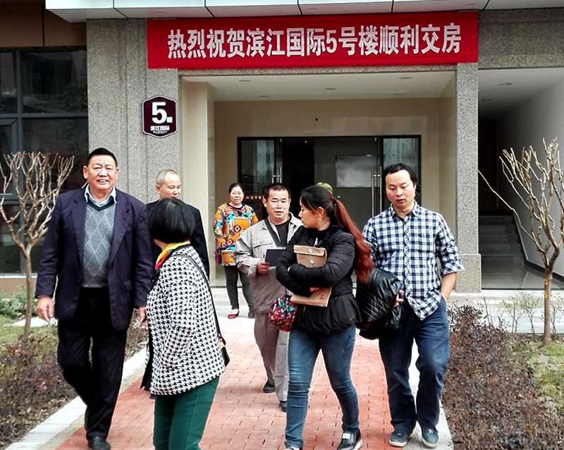 本报讯 11月15日,在连续多日的阴云天气之后,冬日和煦的暖阳终于普照大地。位于洛阳溪街的滨江国际大门口人来人往,不少业主们纷纷从四面八方赶过来,兴致勃勃的来到5号楼接房现场,从物业人员手中接过自已的新房。