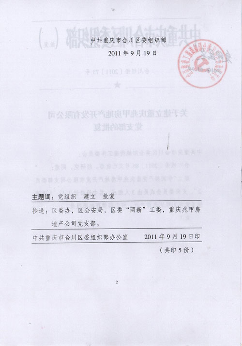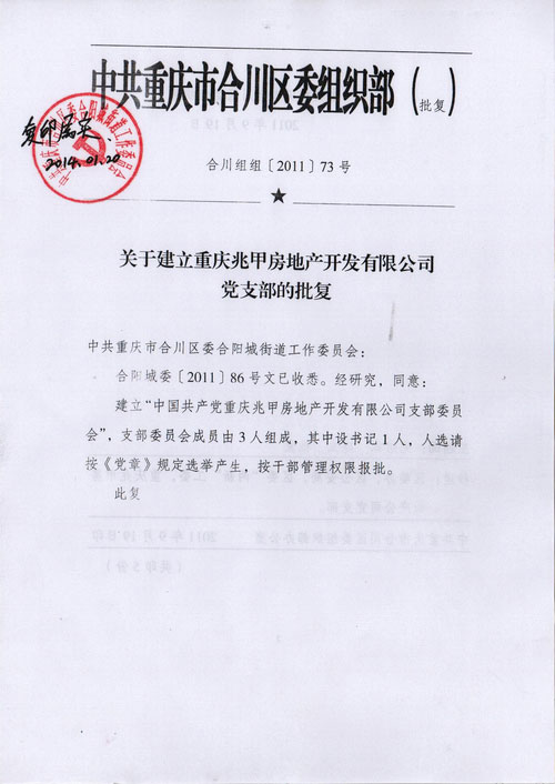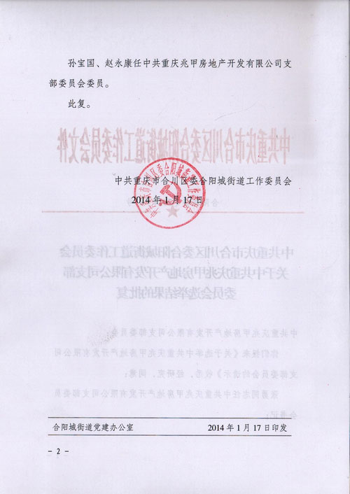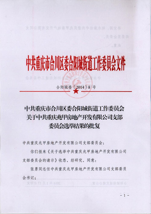 (中共重庆市合川区合阳城街道办事处党委批复文件)