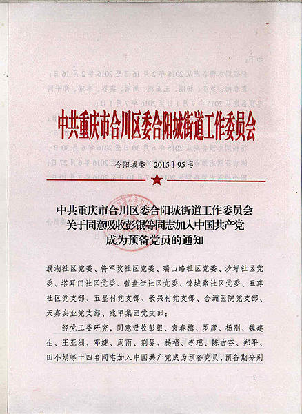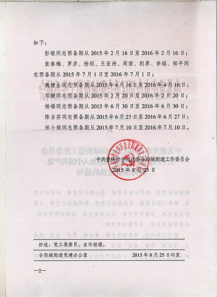 合阳城街道党工委关于魏建生等同志成为预备党员的通知