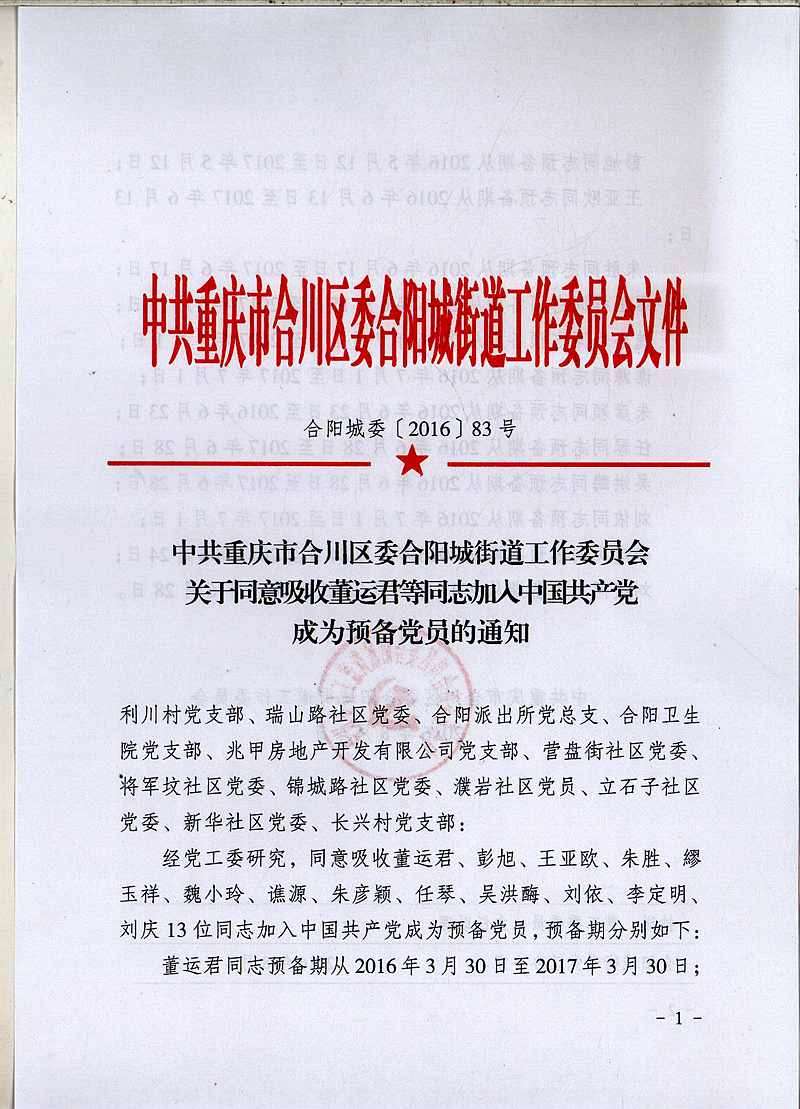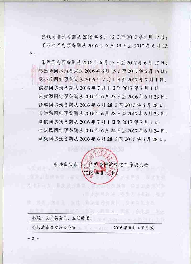 中共合阳城街道党工委关于同意吸收缪玉祥等同志加入中国共产党成为预备党员的通知