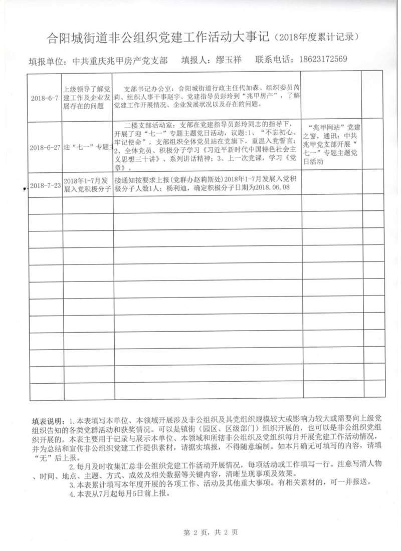 2018年1-7月中共兆甲党支部活动大事记(继续发送第二页)