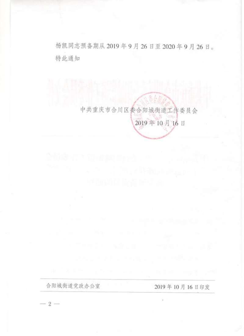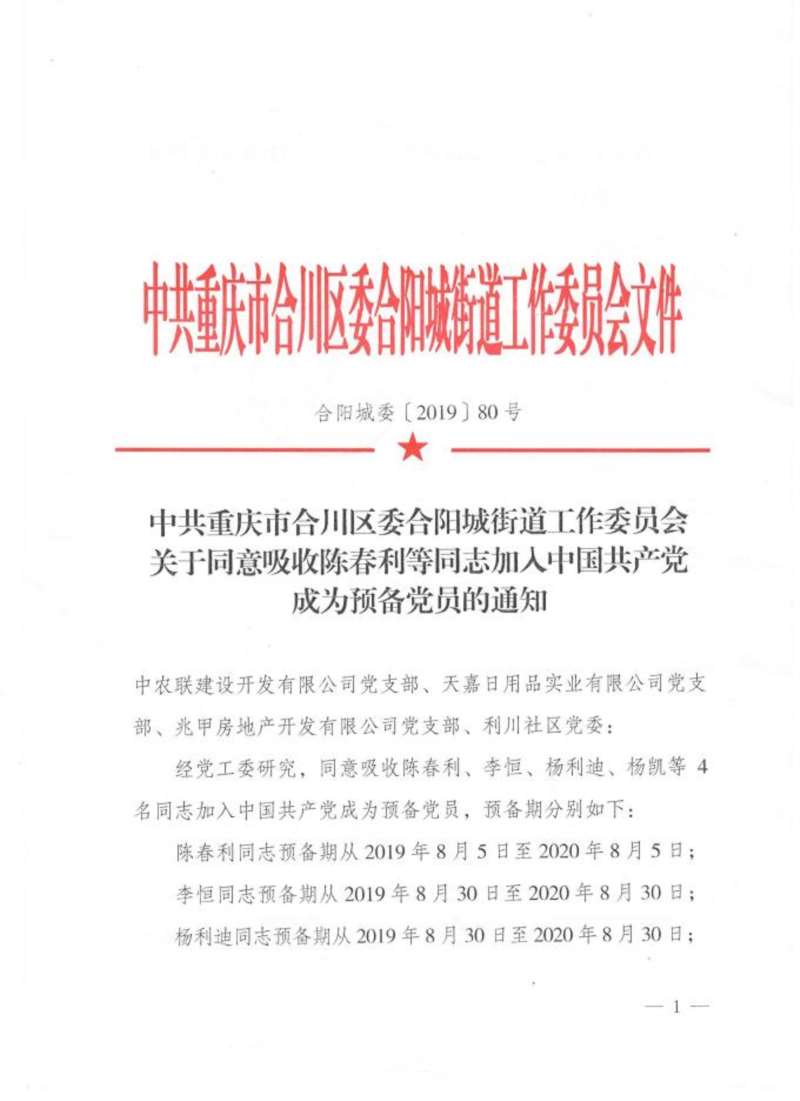 中共合阳城党街道工委关于同意吸收杨利迪等同志加入中国共产党成为预备党员的通知