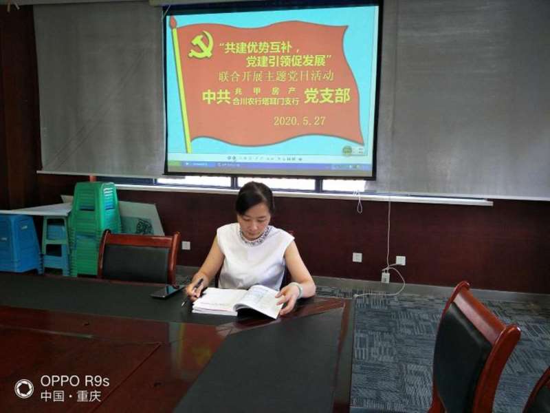 (通讯员 缪玉祥)2020年5月27日,中共重庆兆甲房地产开发有限公司、合川农行塔耳门支行党支部组织全体党员联合开展“共建优势互补、党建引领促发展”主题党日活动,合阳城街道党建指导员彭玲同志出席参加了会议。