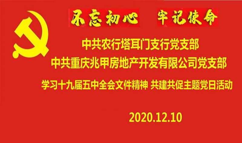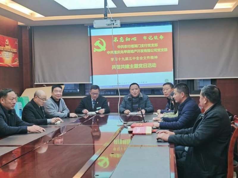 (通讯员 缪玉祥)2020年12月10日,中共重庆兆甲房地产开发有限公司、合川农行塔耳门支行党支部组织全体党员联合开展“共促共建”主题党日活动,学习十九届五中全会文件精神,合阳城街道党建指导员彭玲同志对学习活动的开展发表了指导性意见。