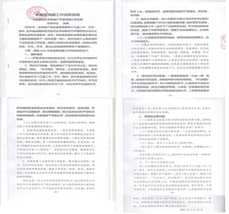 党支部书记张勇同志完成并向上级党组织递交2020年度书记抓基层党建述职报告 |