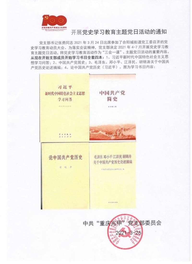 中共“重庆兆甲”党支部开展党史学习教育主题党日活动的通知