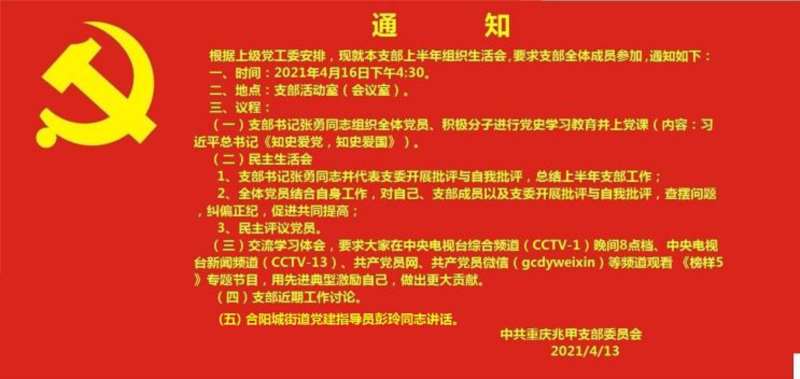 中共重庆兆甲党支部2020年度组织生活会的通知