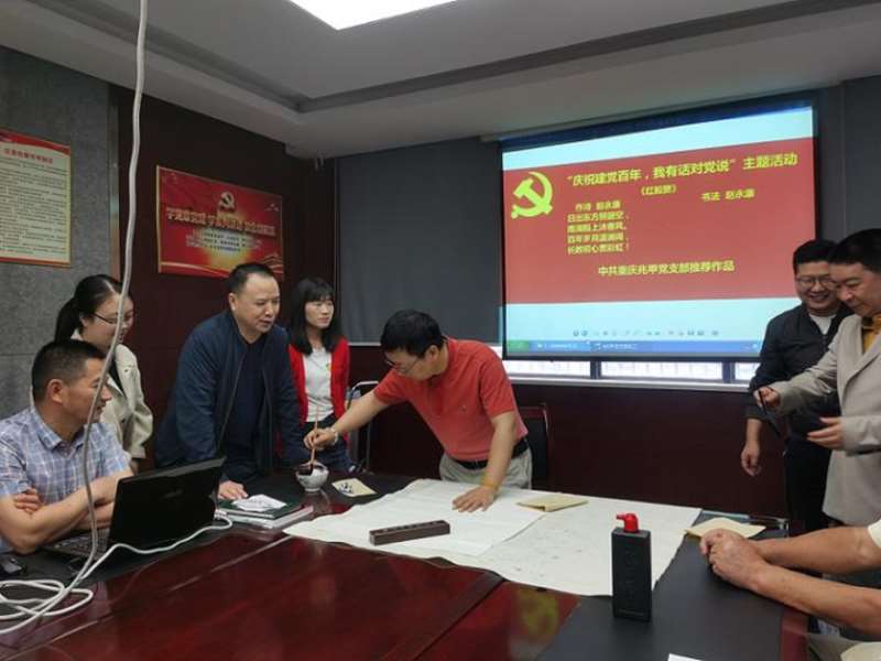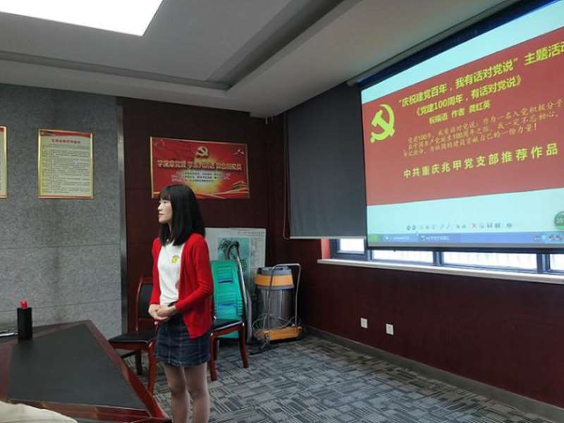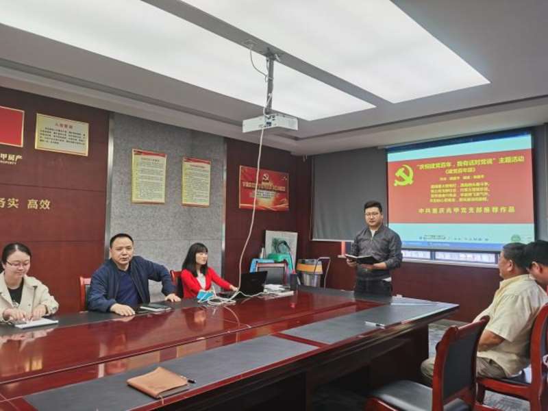 (通讯员 缪玉祥) 2021年6月29日上午10时30分,重庆兆甲房地产开发有限公司党支部在二楼党员活动室开展“庆祝建党百年,我有话对党说”主题活动。合阳城街道党群办符登位、党建指导员彭玲对活动的开展作出指导意见。