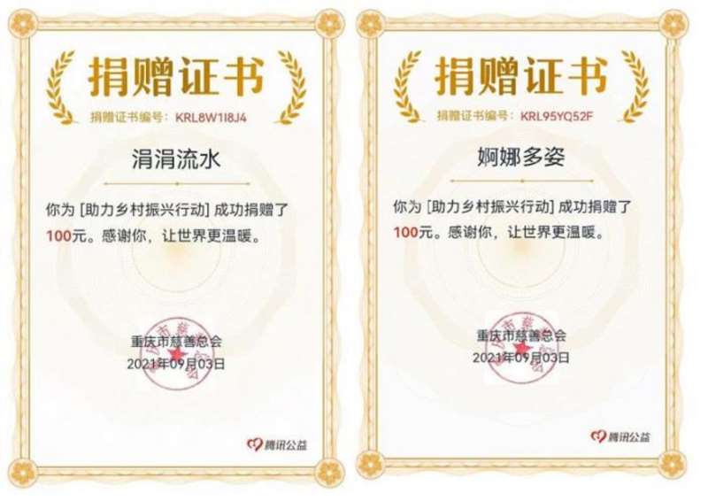 图3:参加(2021)9.9公益日捐款活动已经捐款的同志“捐赠证书”