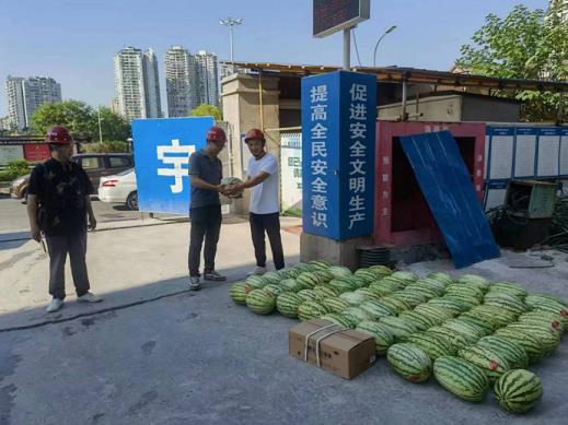 慰问过程中,中共党员魏建生同志代表两套班子领导,在文昌府项目施工现场慰问坚守在高温一线岗位的员工,为他们送上了西瓜等防暑降温品的同时,叮嘱他们要提高高温天里的安全工作意识,合理灵活安排作业时间,尽量错开高温时段生产,做到工作防暑“两不误”。同时希望保证施工质量,更要保证安全地完成施工任务。一线岗位员工代表表示:“天气虽然炎热,定会克服酷暑高温、坚守岗位、尽职尽责,积极投身于生产中,保质保量完成各项施工任务”。