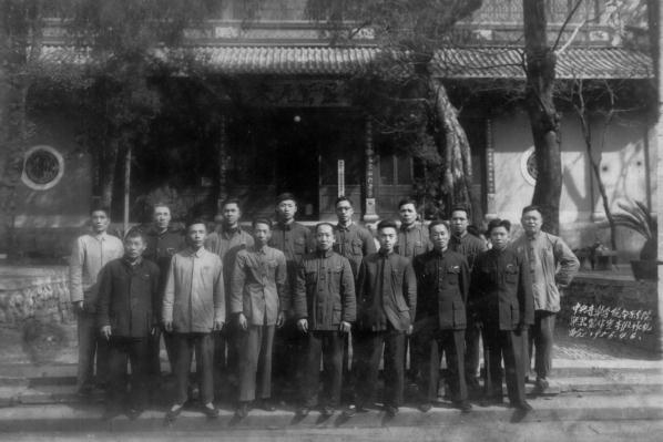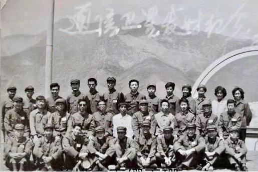 图11:缪玉珊在部队的工作现场同战友们在一起,前排右起第5人为缪玉珊。