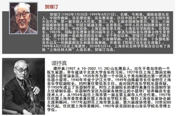 图4:缪志广在中央音乐学院华东分院乐器制作室工作时直接领导贺绿汀、谭抒真两院长简介: