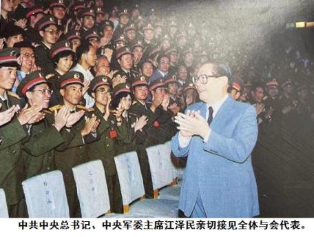 图6:1991年6月14日上午十点钟在北京京西宾馆,江泽民总书记等党和国家领导人亲切接见缪玉珊等出席国防科工委先进集体先进个人代表会议代表: