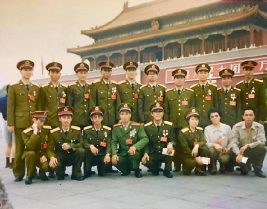 图8:1991年6月,缪志广3子缪玉珊在出席国防科工委先进集体先进个人代表会议期间在天安门广场合影,前排右起第4人为缪玉珊。