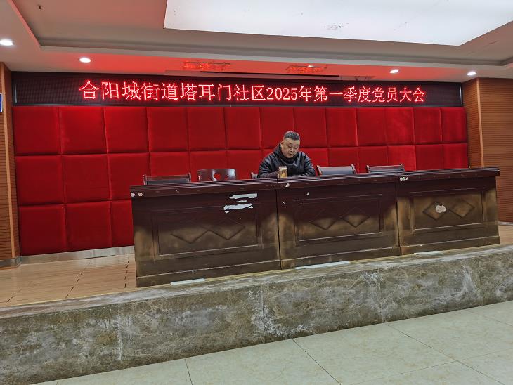 (通讯员 缪玉祥) 2025年3月31日下午14时30分,塔耳门社区党工委在社区会议室召开党员大会,本次会议是塔耳门社区深入贯彻中央八项规定精神学习教育动员部署会、合阳城街道塔耳门社区2025年第一季度党员大会、塔耳门社区2025年第一季度城市基层党建联席会一起召开,“兆甲房产”党支部书记缪玉祥同志出席会议。